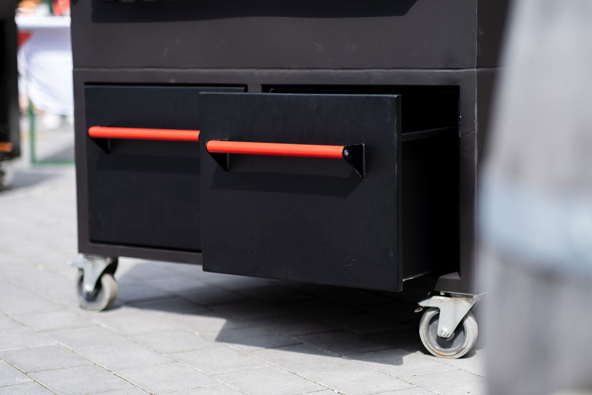 Viel Stauraum für Zubehör, Grillgut oder andere Materialien bieten zwei Schubladen mit Soft-Stop-Funktion auf der Vorderseite des Cubes.